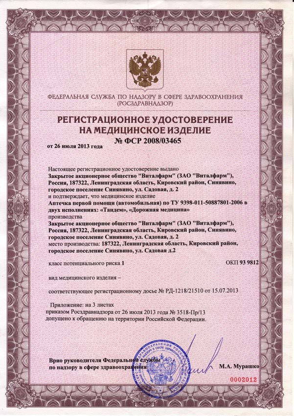 | Инструкция по оказанию первой помощи с применением аптечки для оказания первой помощи пострадавшим в дорожно-транспортных происшествиях (автомобильной) | 1 шт |
