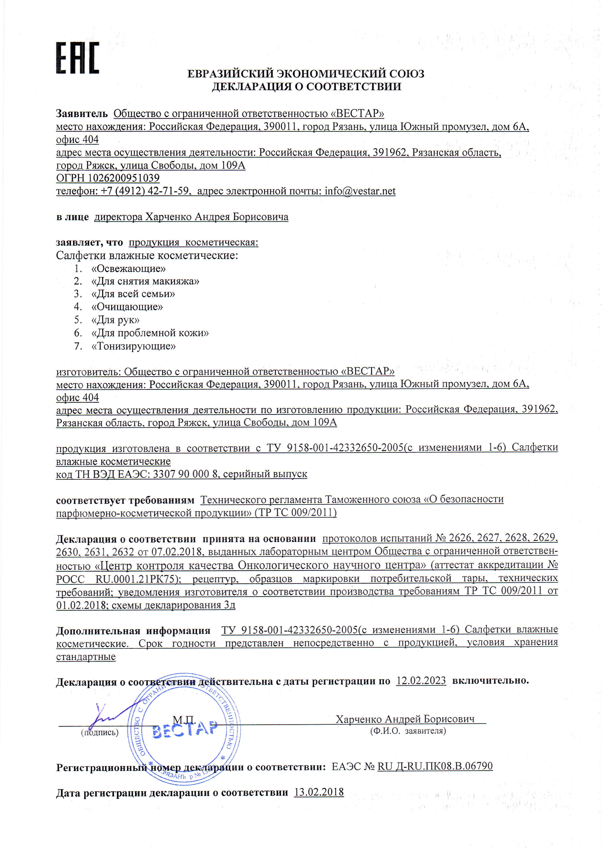 | Состав | полотно нетканое, вода, ПЭГ-40, гидрогенизированное касторовое масло, пропиленгликоль, децил глюкозид, кислота лимонная, динатриевая соль ЭДТА, метилхлороизотиазолинон, метилизотиазолинон, парфюмерная композиция |